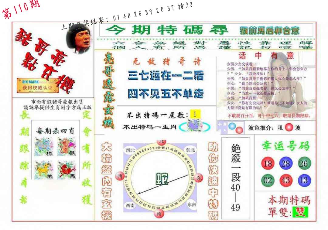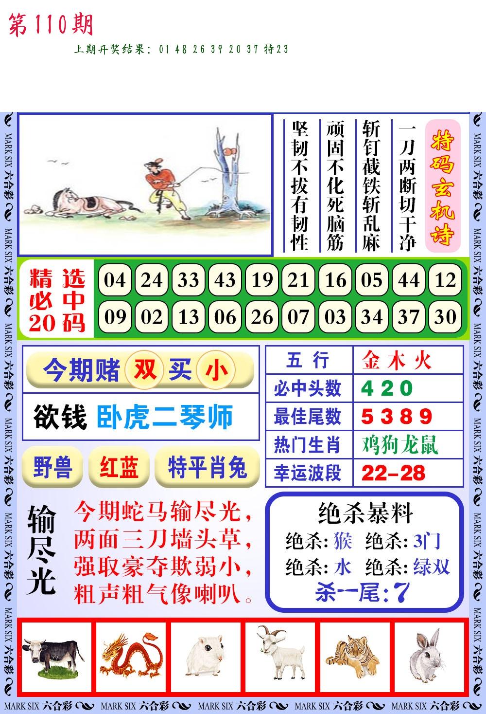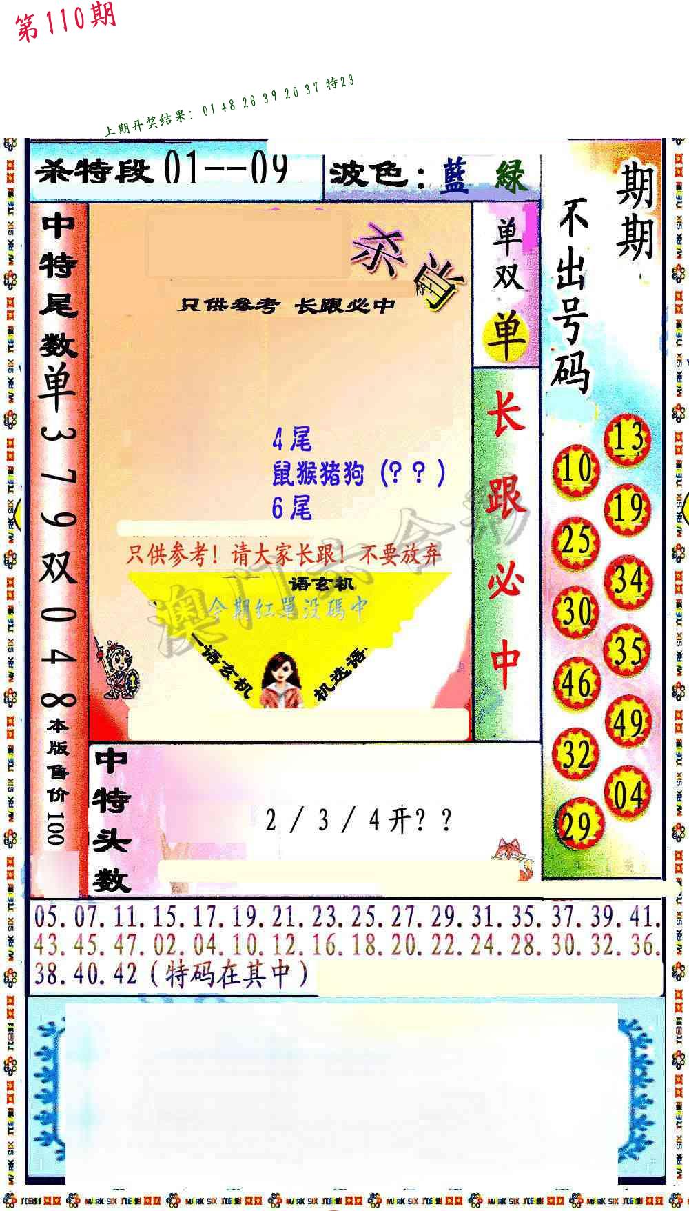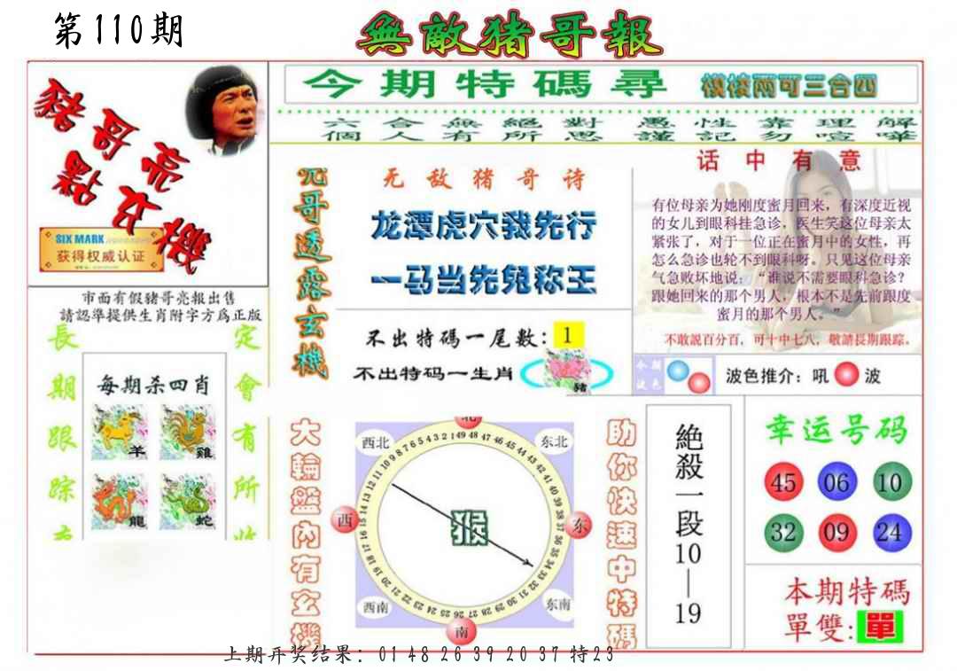 110期绝杀1.肖1.尾 【马肖0尾】 开 ??????? |