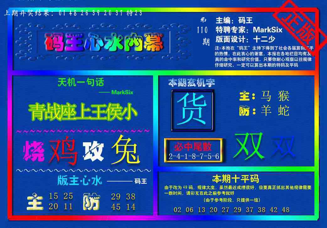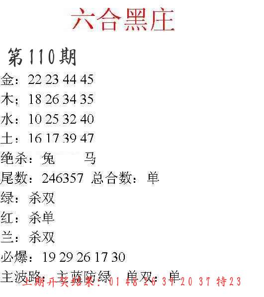 准确率高达90%,期期挑出12-18码 ____________★____________ 【九肖】 110期【鸡兔龙羊蛇虎鼠马猴】开????? 109期【鼠猪虎龙牛猴羊蛇鸡】开23猴对 108期【鸡猴羊蛇龙虎兔马鼠】开20猪错 107期【猪狗虎鼠龙牛蛇兔鸡】开10鸡对 106期【猴羊牛鼠猪虎狗兔鸡】开07鼠对 105期【兔虎猪马猴羊牛狗鸡】开44猪对 104期【羊龙蛇马虎鸡牛鼠狗】开21狗对 103期【蛇猪羊鸡兔马猴龙虎】开39龙对 ____________★____________ 【四头】 110期【0-1-3-4】开?????? 109期【1-2-0-3】开23猴对 108期【4-3-2-0】开20猪对 107期【0-3-4-2】开10鸡错 106期【2-1-3-0】开07鼠对 105期【2-1-4-3】开44猪对 104期【3-4-0-1】开21狗错 103期【3-2-1-0】开39龙对 ____________★____________ 【四行】 110期【水-火-土-木】开?????? 109期【木-金-土-火】开23猴错 108期【水-金-火-木】开20猪错 107期【金-木-火-土】开10鸡对 106期【金-火-木-水】开07鼠错 105期【火-金-水-木】开44猪对 104期【土-木-火-金】开21狗对 103期【金-水-土-木】开39龙对 ____________★____________ 【七尾】 110期【2-8-5-7-3-6-9】开????? 109期【3-9-2-5-8-6-4】开23猴对 108期【9-4-1-3-0-6-2】开20猪对 107期【8-5-7-6-4-0-2】开10鸡对 106期【5-9-1-6-4-8-3】开07鼠错 105期【4-2-6-8-7-9-3】开44猪对 104期【8-5-4-6-0-1-7】开21狗对 103期【1-5-9-3-0-7-4】开39龙对 ____________★____________ 【双波】 110期【红波+绿波】开????? 109期【红波+蓝波】开23猴对 108期【绿波+红波】开20猪错 107期【红波+蓝波】开10鸡对 106期【蓝波+红波】开07鼠对 105期【绿波+蓝波】开44猪对 104期【红波+蓝波】开21狗错 103期【红波+蓝波】开39龙错 ____________★____________ |
