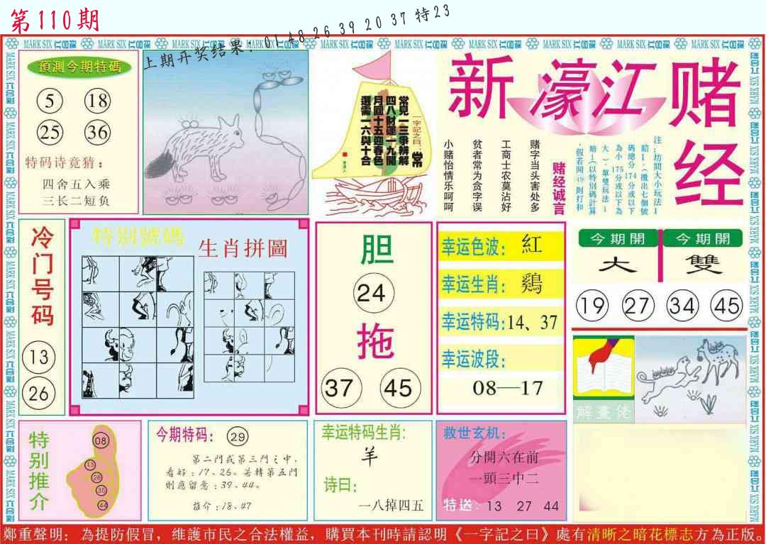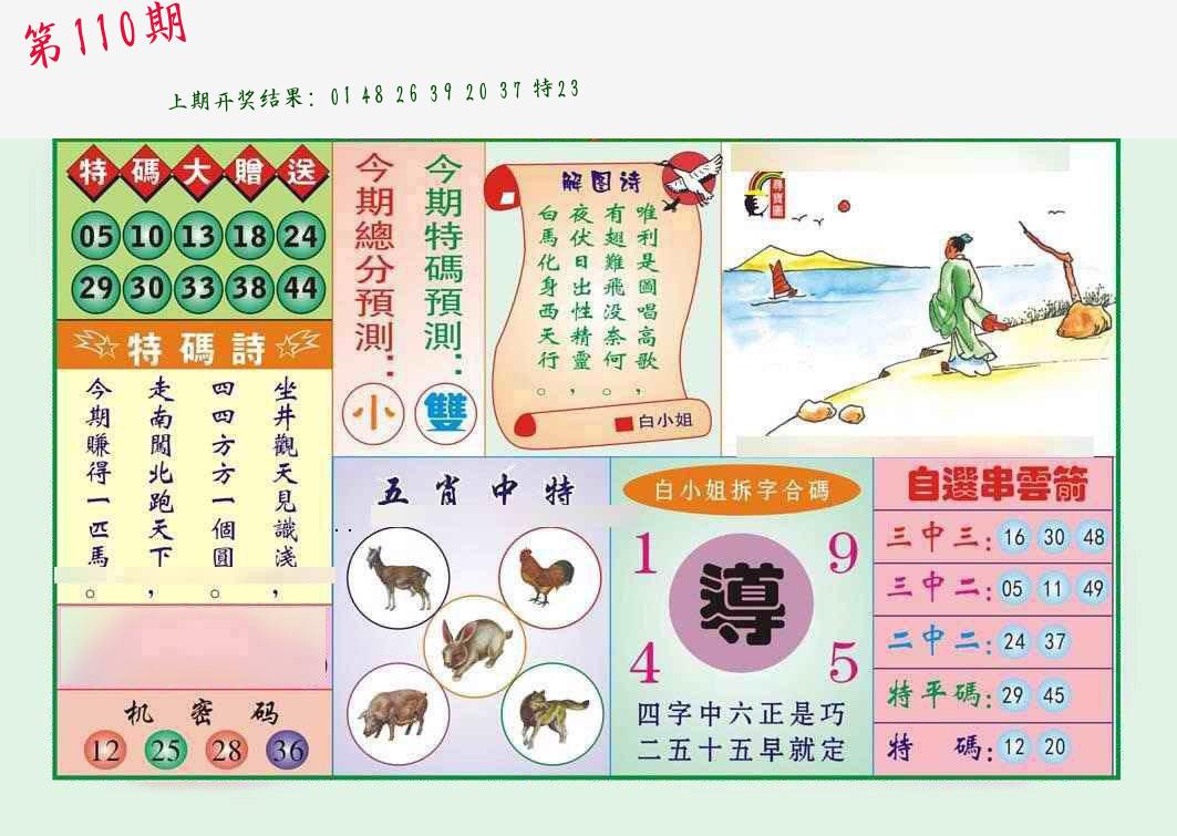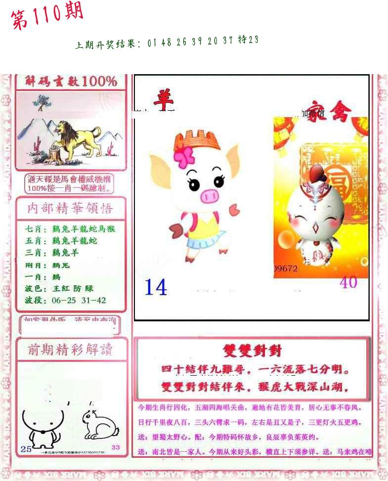 110期 家 【牛猪鸡】 野 【鼠龙猴】开 ??????? |