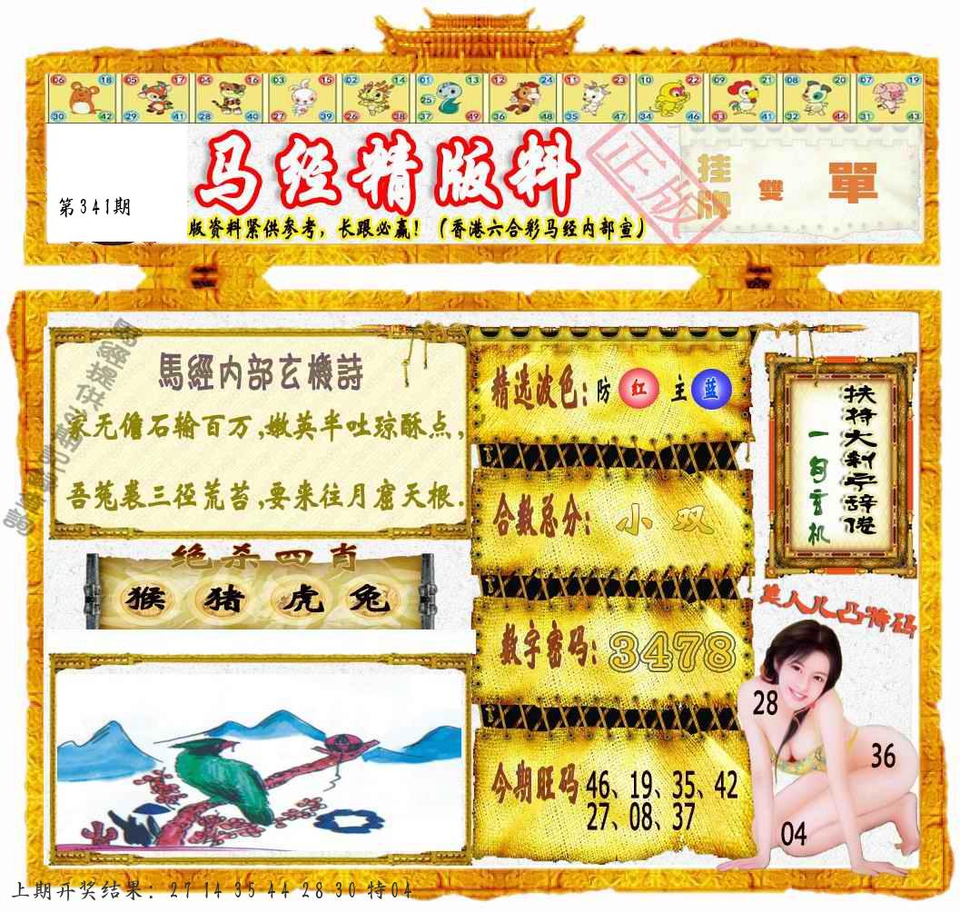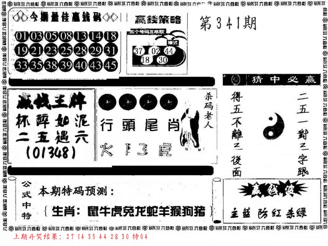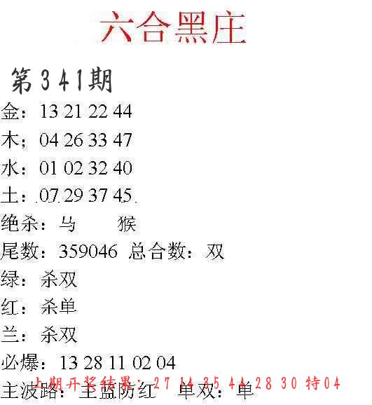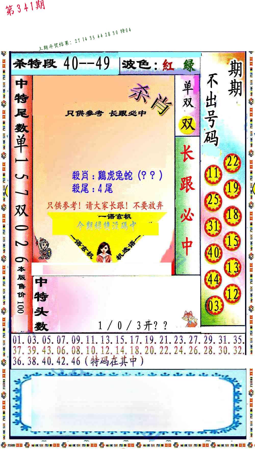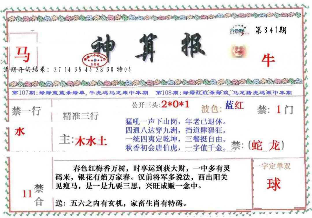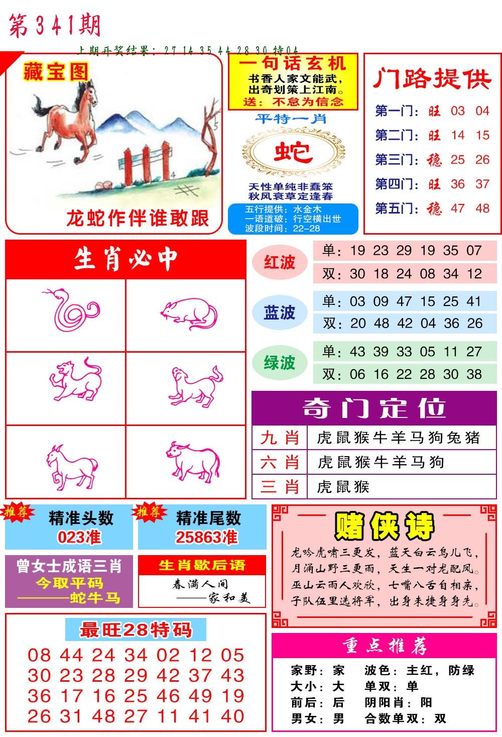341期绝杀1.肖1.尾 【马肖1尾】 开 ??????? |