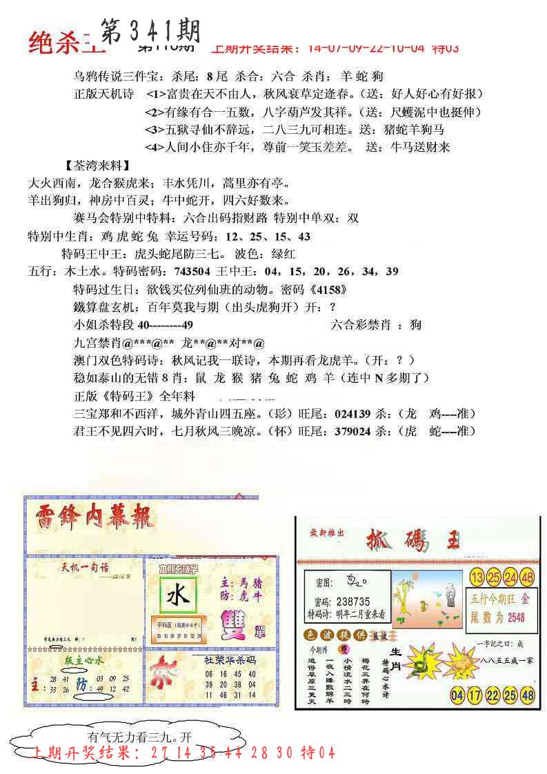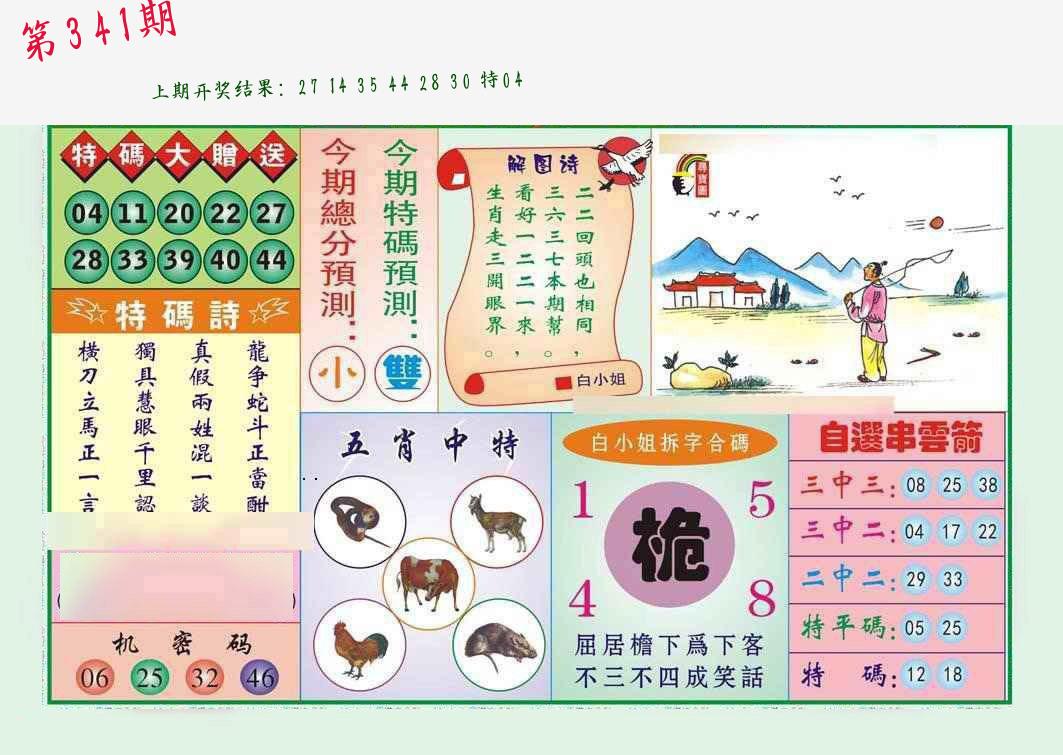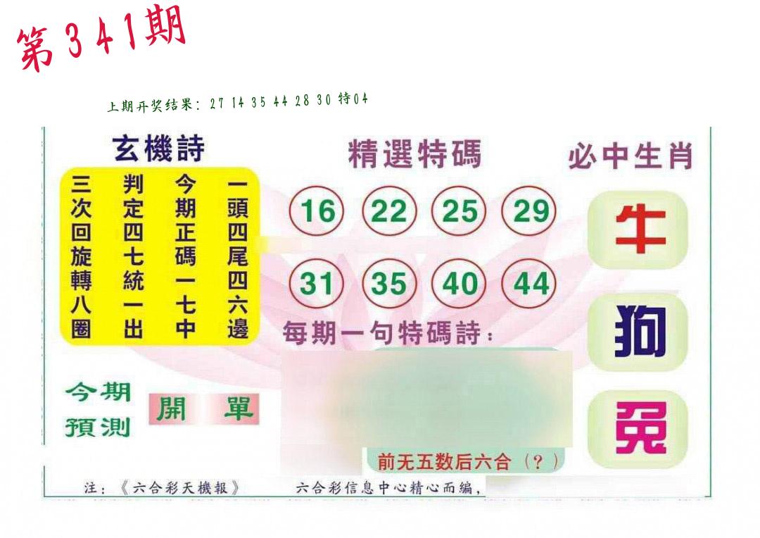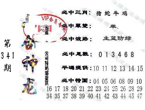 第341期:四肖中特开(???????)中 |