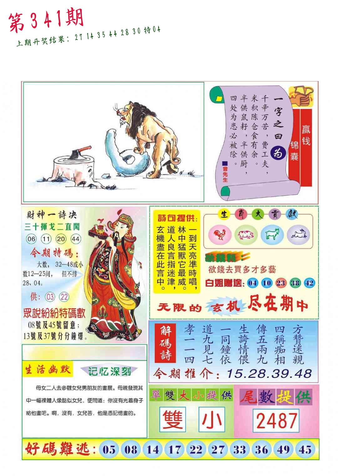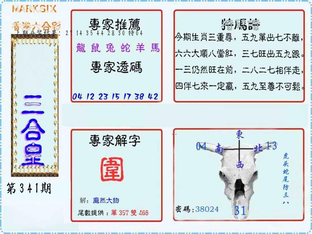 341期必中九肖 (??????)