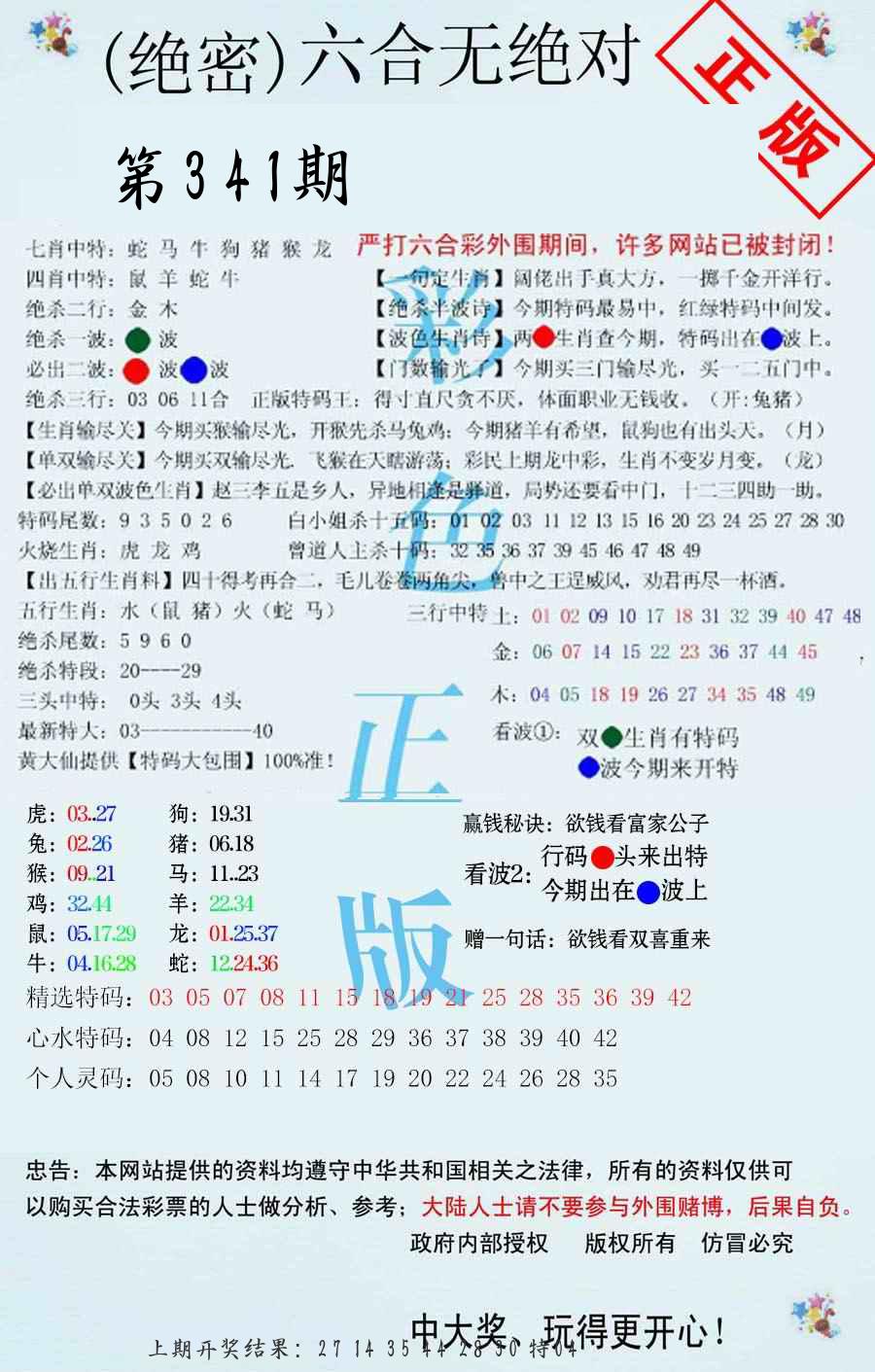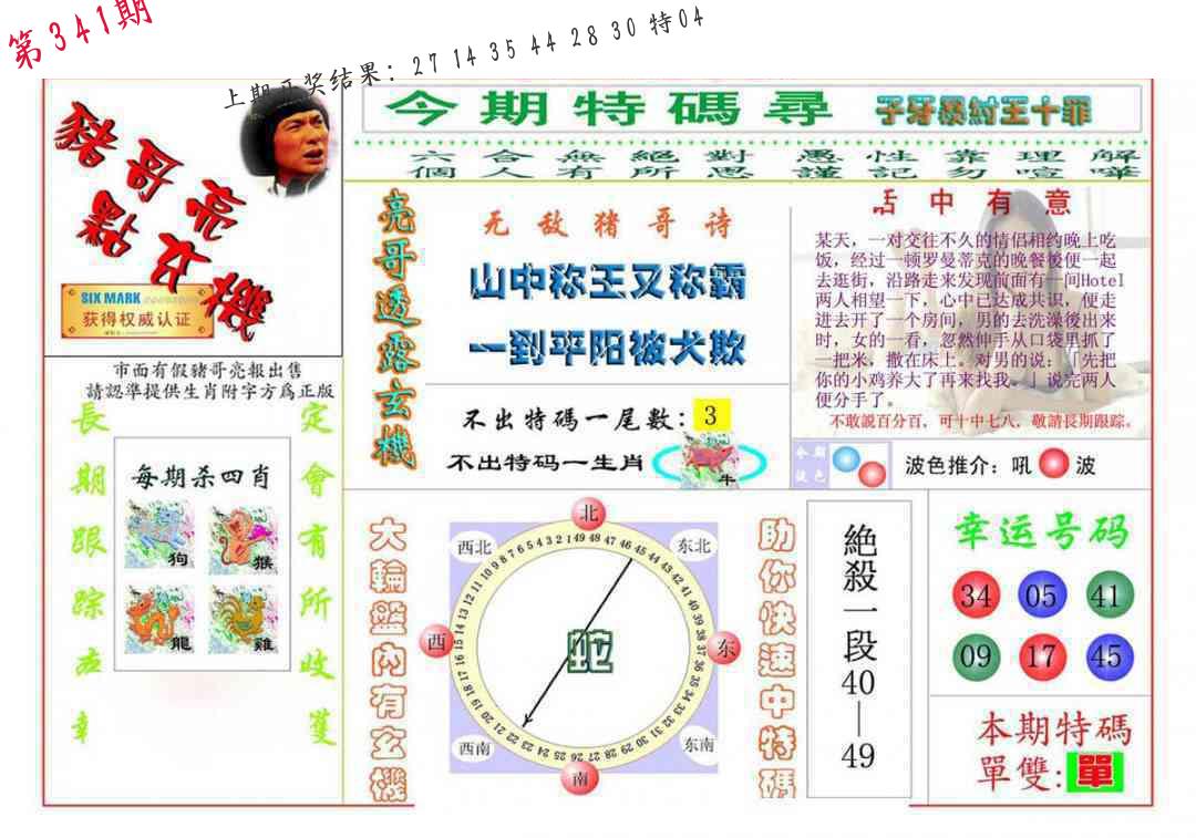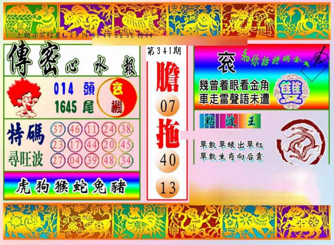 | 341期推荐五肖: 蛇狗牛龙猪 ~~稳准狠 |
