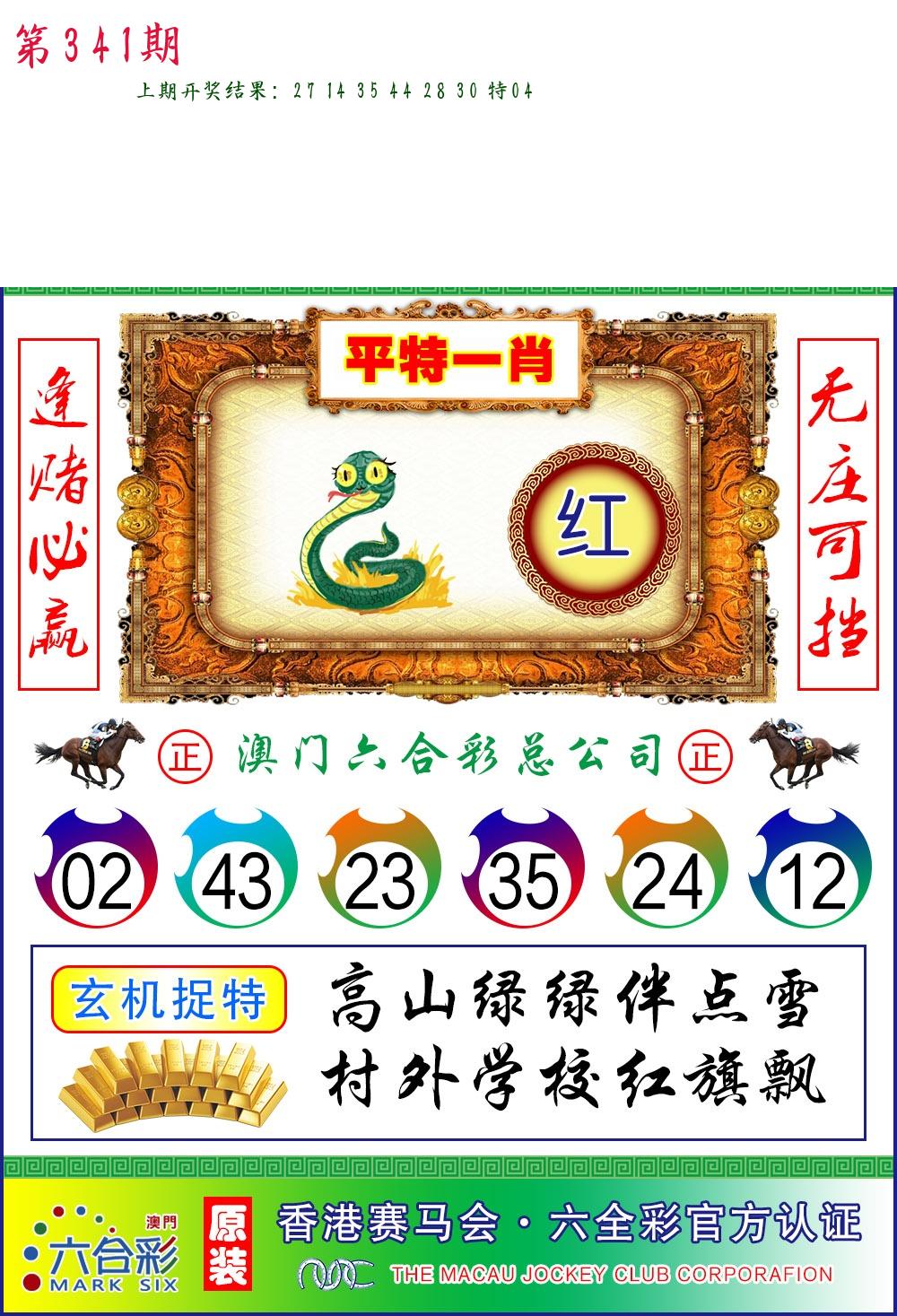 336期绝杀一波 【绿波】 开 13蛇对 |